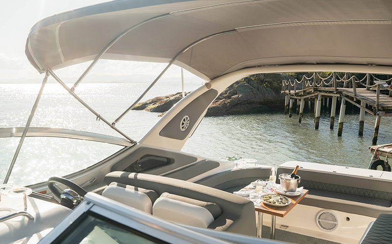 At any point during your stay at Ponta dos Ganchos, you can book a private ride in a motorboat to explore the areas around the property. The itinerary, made exclusively for just one couple, can include a brief visit to Florianópolis, Dolphins’ Bay and Anhatomirim Fort. Those who are interested can add a diving session in Arvoredo’s Marine Biology Reserve to the ride.