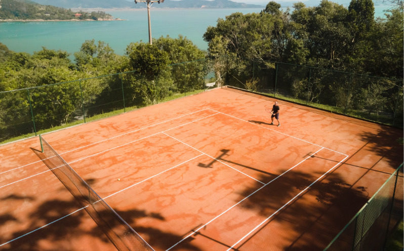 Para los amantes del tenis el Resort pone a disposición durante todo el día una cancha de arcilla con la mejor vista de la Costa Esmeralda. Para los iniciantes o para aquellos que no tienen compañía, un profesor podrá ser contratado para dar clases particulares, o hasta jugar un partido. Es necesario agendamiento previo.
